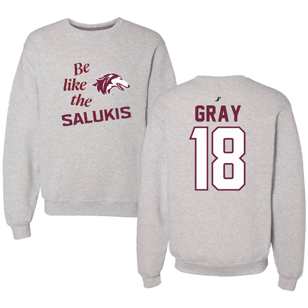 Southern Illinois University at Carbondale Baseball Light Gray Be Like Us Crewneck - #18 Hesston Gray