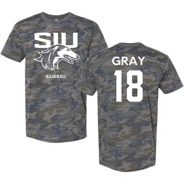 Southern Illinois University at Carbondale Baseball Vintage Camo Tee - #18 Hesston Gray