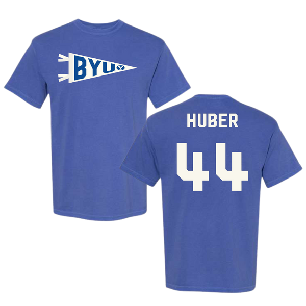 Brigham Young University Softball Blue Pennant Comfort Colors Tee - #44 Hina Huber