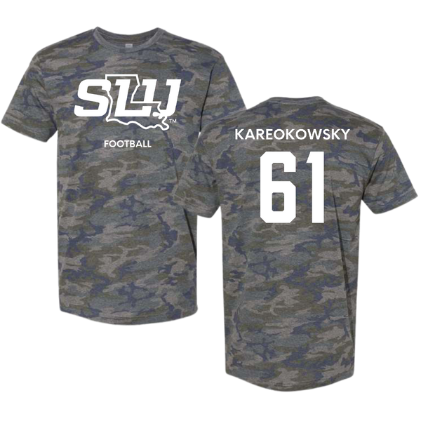 Southeastern Louisiana University Football Vintage Camo Tee - #61 Holden Kareokowsky
