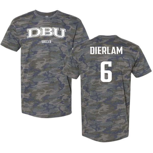 Dallas Baptist University Soccer (M) Vintage Camo Tee - #6 Hunter Dierlam