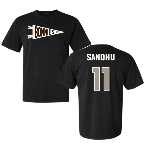 St. Bonaventure University Soccer Black Pennant Comfort Colors Tee - #11 Ishana Sandhu
