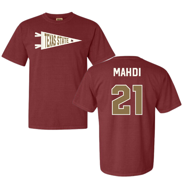 Texas State University Football Maroon Pennant Comfort Colors Tee - #21 Ismail Mahdi