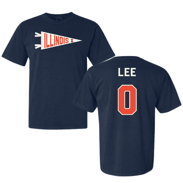 University of Illinois Soccer Navy Pennant Comfort Colors Tee - #0 Izzy Lee
