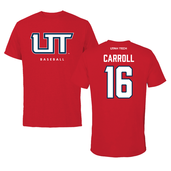 Utah Tech University Baseball Red Tee - #16 Jace Carroll