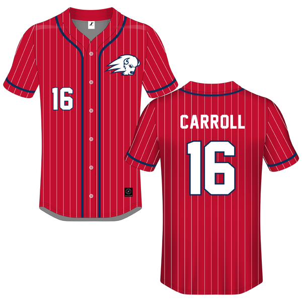 Utah Tech University Red Pinstripe Button-Down Jersey - #16 Jace Carroll