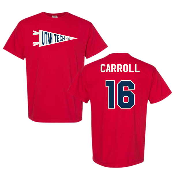 Utah Tech University Baseball Red Pennant Comfort Colors Tee - #16 Jace Carroll