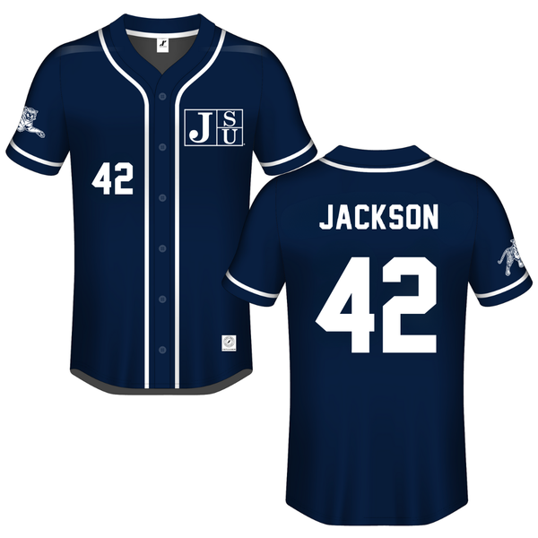 Jackson State University Navy Button-Down Jersey - #42 Jace Jackson