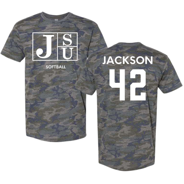 Jackson State University Softball Vintage Camo Tee - #42 Jace Jackson