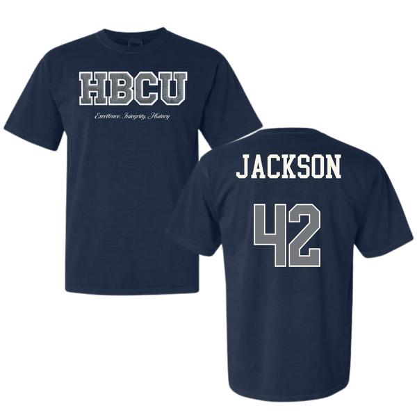 Jackson State University Softball Navy HBCU Varsity Comfort Colors Tee - #42 Jace Jackson