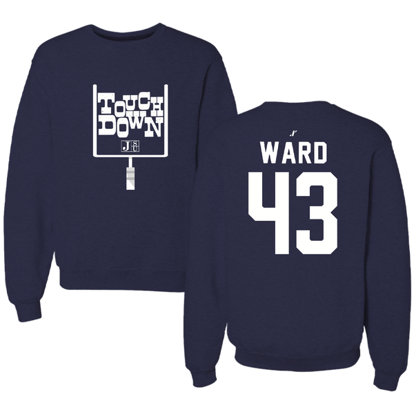 Jackson State University Football Navy Touchdown Crewneck - #43 Jace Ward