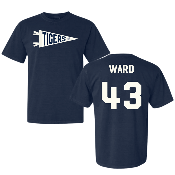 Jackson State University Football Navy Pennant Comfort Colors Tee - #43 Jace Ward