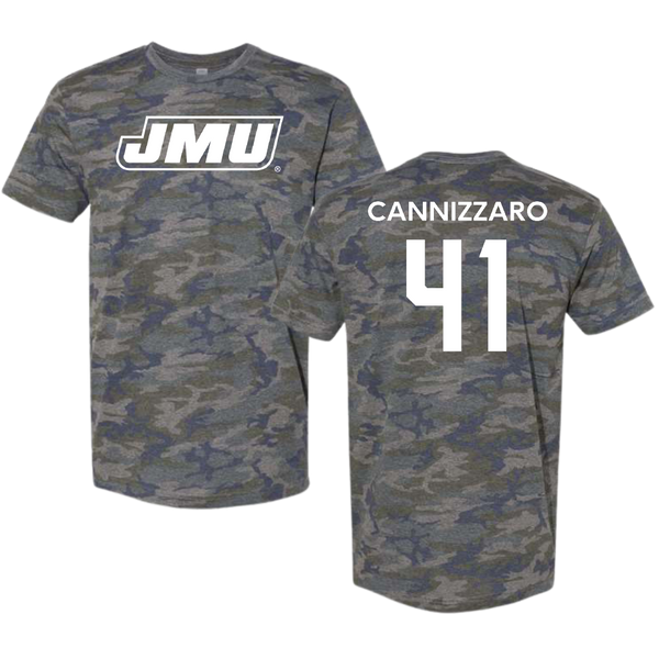 James Madison University Baseball Vintage Camo Tee - #41 Jack Cannizzaro