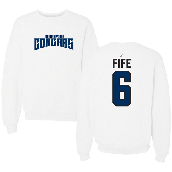 Brigham Young University Volleyball White Classic Crewneck - #6 Jackson Fife