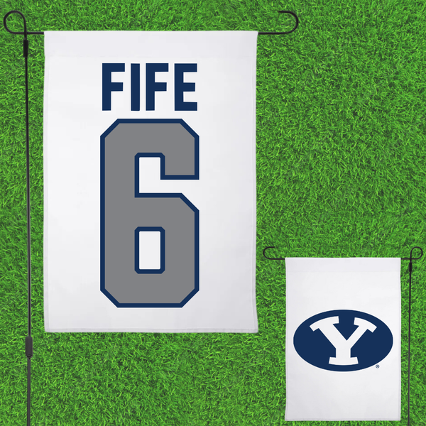 Brigham Young University Volleyball White Garden Flag - #6 Jackson Fife