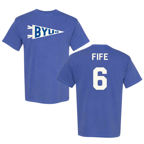 Brigham Young University Volleyball Blue Pennant Comfort Colors Tee - #6 Jackson Fife