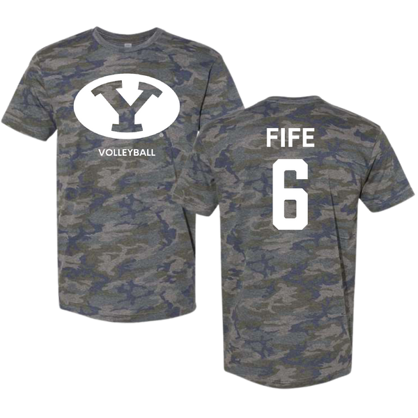 Brigham Young University Volleyball (M) Vintage Camo Tee - #6 Jackson Fife