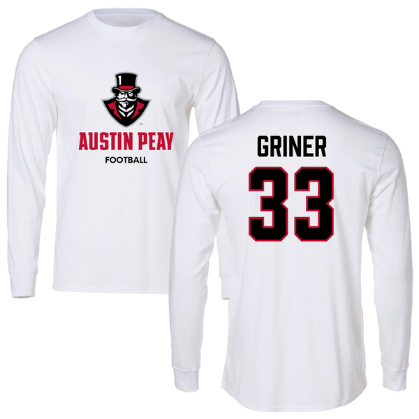 Austin Peay State University Football White Long Sleeve - #33 Jackson Griner