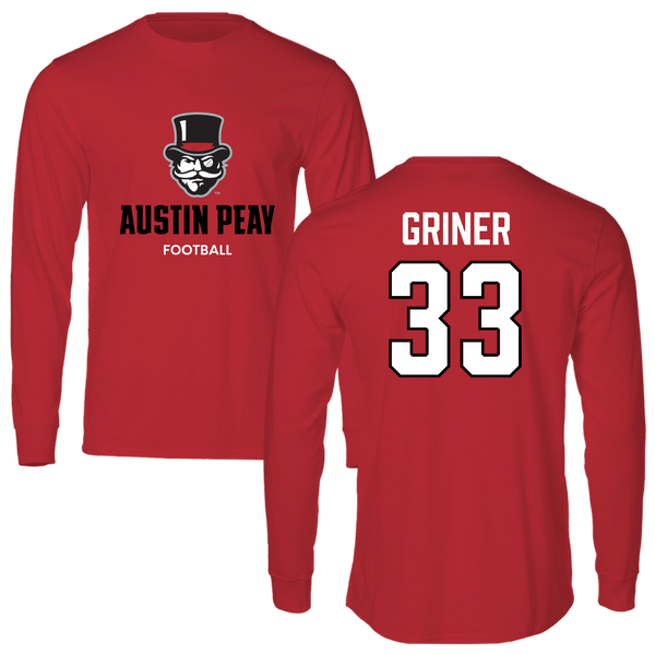Austin Peay State University Football Red General Long Sleeve - #33 Jackson Griner