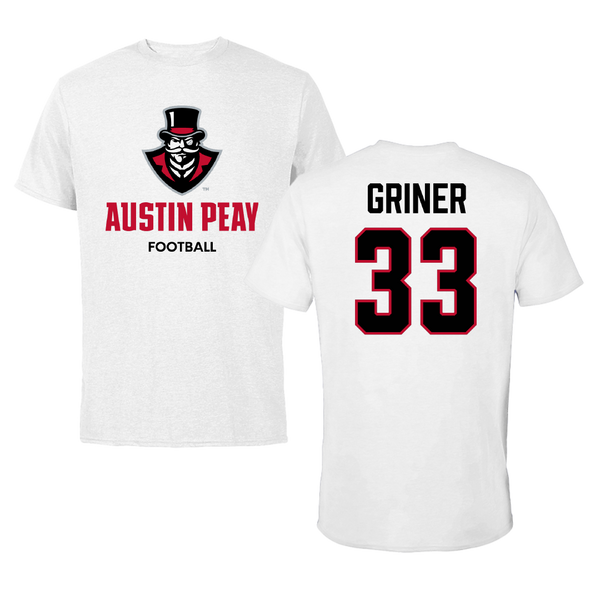 Austin Peay State University Football White Tee - #33 Jackson Griner