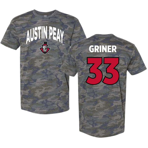 Austin Peay State University Football Vintage Camo Tee - #33 Jackson Griner