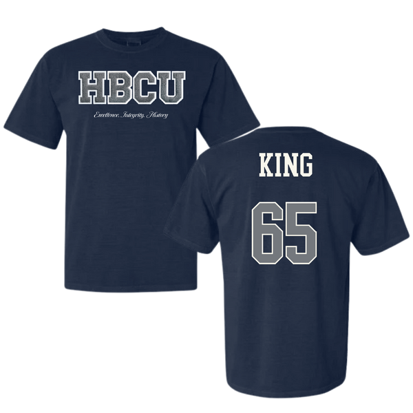Jackson State University Football Navy HBCU Varsity Comfort Colors Tee - #65 Jackson King