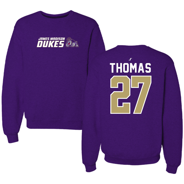 James Madison University Football Purple General Crewneck - #27 Jacob Thomas