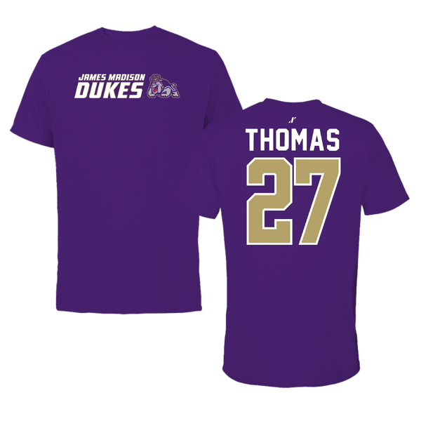 James Madison University Football Purple Gameday Tee - #27 Jacob Thomas