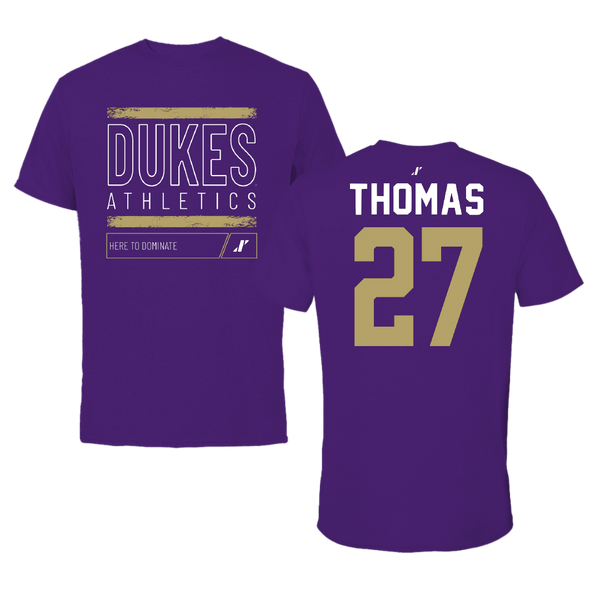 James Madison University Football Purple Dominate Tee - #27 Jacob Thomas
