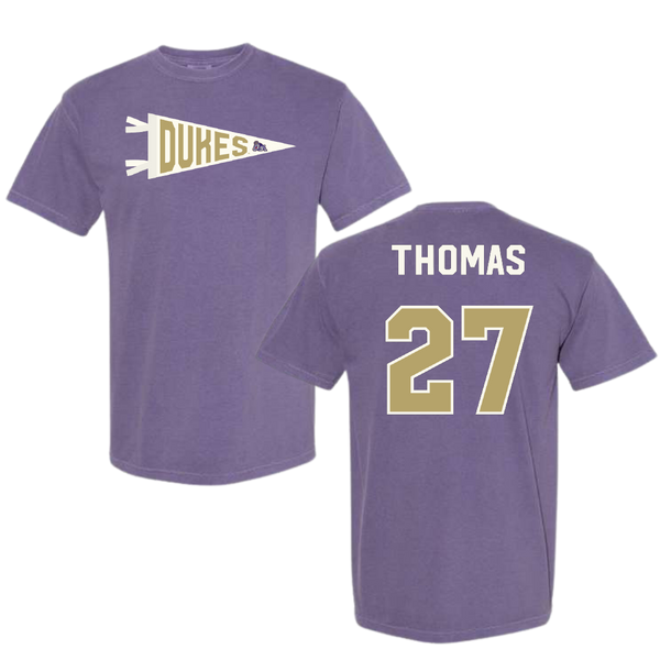 James Madison University Football Purple Pennant Comfort Colors Tee - #27 Jacob Thomas