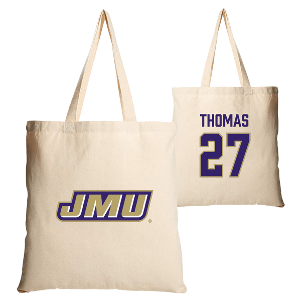 James Madison University Football Tan Canvas Tote Bag - #27 Jacob Thomas