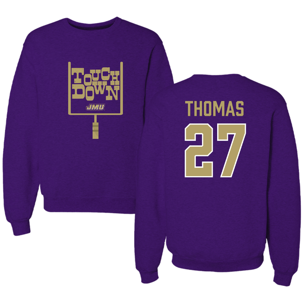James Madison University Football Purple Touchdown Crewneck - #27 Jacob Thomas
