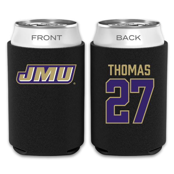 James Madison University Football Black Can Cooler - #27 Jacob Thomas