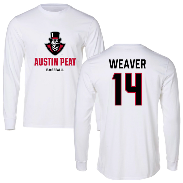 Austin Peay State University Baseball White Long Sleeve - #14 Jacob Weaver