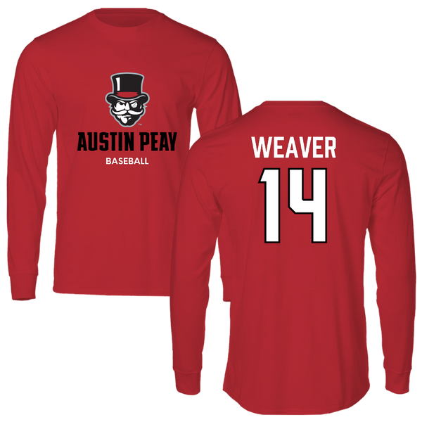Austin Peay State University Baseball Red General Long Sleeve - #14 Jacob Weaver