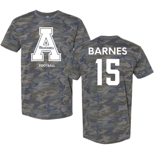 Appalachian State University Football Vintage Camo Tee - #15 Jaden Barnes
