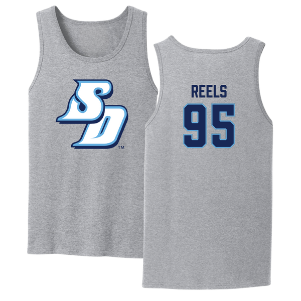 University of San Diego Football Sport Gray Tank Top - #95 Jae’Von Reels