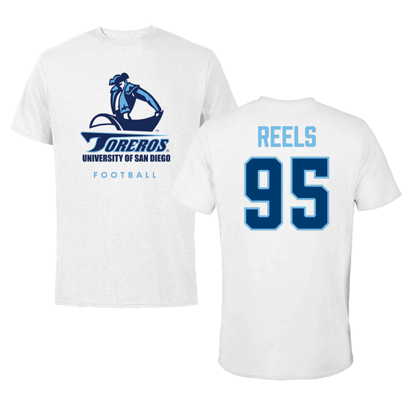 University of San Diego Football White Tee - #95 Jae’Von Reels