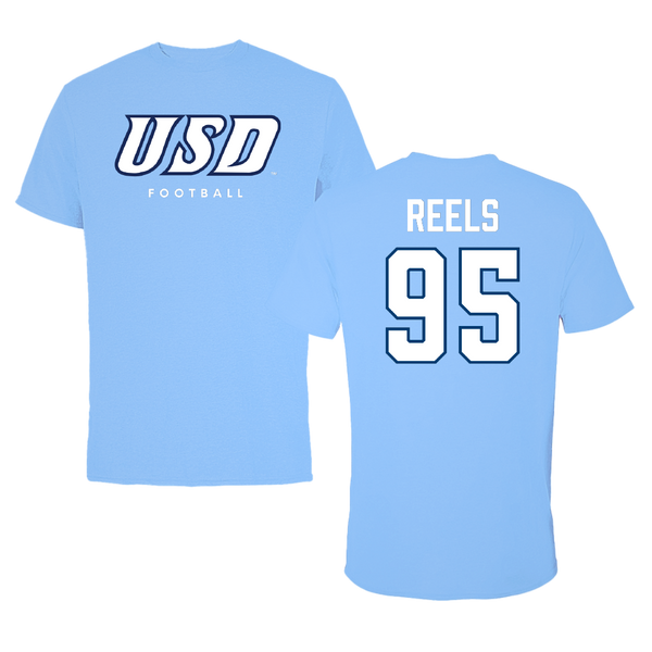 University of San Diego Football Carolina Blue Tee - #95 Jae’Von Reels