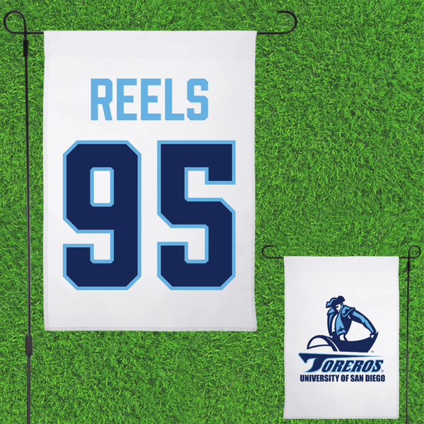 University of San Diego Football White Garden Flag - #95 Jae’Von Reels