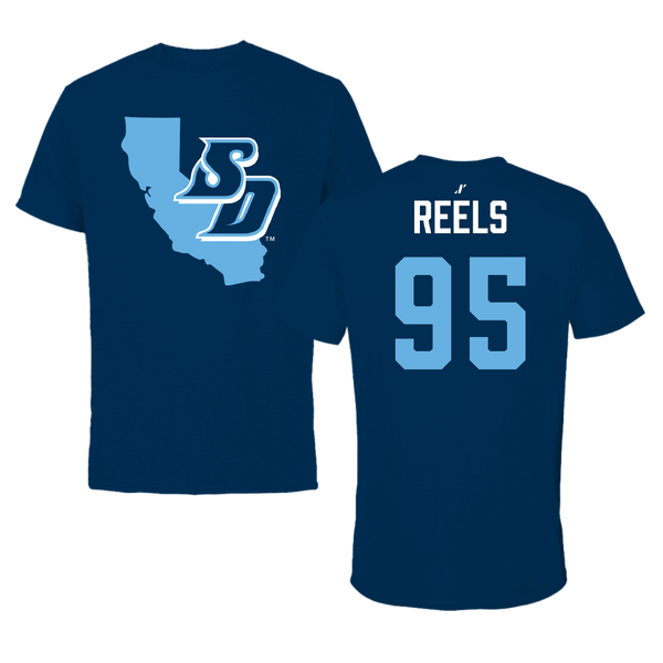 University of San Diego Football Navy State Tee - #95 Jae’Von Reels