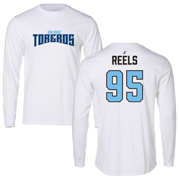 University of San Diego Football White Classic Long Sleeve - #95 Jae’Von Reels
