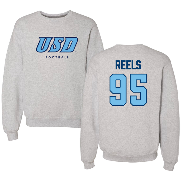University of San Diego Football Gray Crewneck - #95 Jae’Von Reels