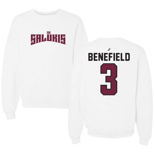Southern Illinois University at Carbondale Football White Classic Crewneck - #3 Jaelin Benefield