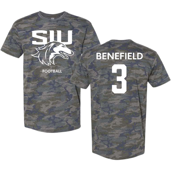 Southern Illinois University at Carbondale Football Vintage Camo Tee - #3 Jaelin Benefield