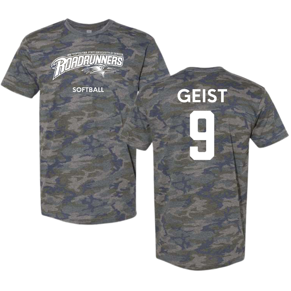 Metropolitan State University of Denver Softball Vintage Camo Tee - #9 Jaiden Geist