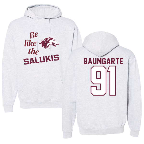 Southern Illinois University at Carbondale Football Light Gray Be Like Us Hoodie - #91 Jake Baumgarte