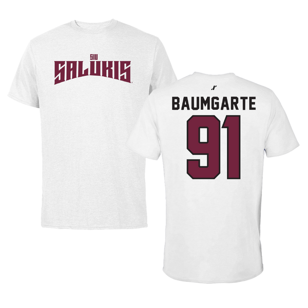 Southern Illinois University at Carbondale Football White Classic Tee - #91 Jake Baumgarte