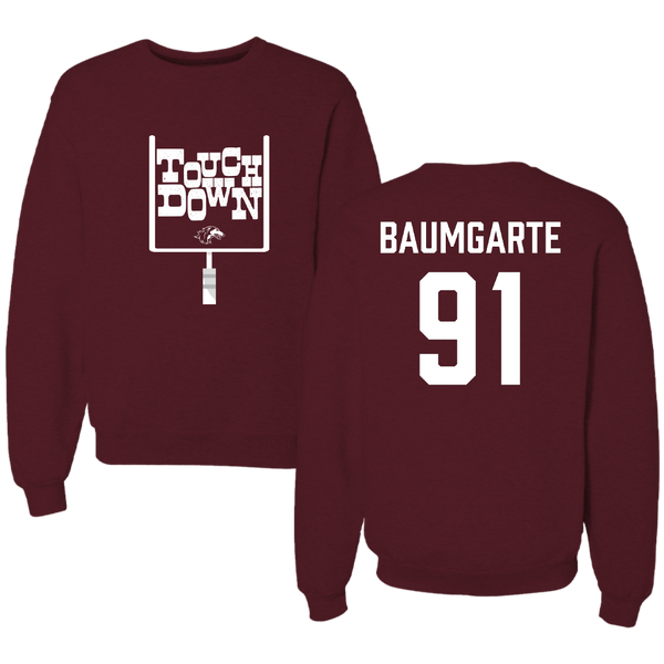 Southern Illinois University at Carbondale Football Maroon Touchdown Crewneck - #91 Jake Baumgarte