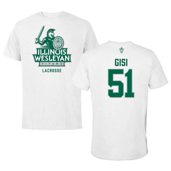 Illinois Wesleyan University Lacrosse White Tee - #51 Jake Gisi
